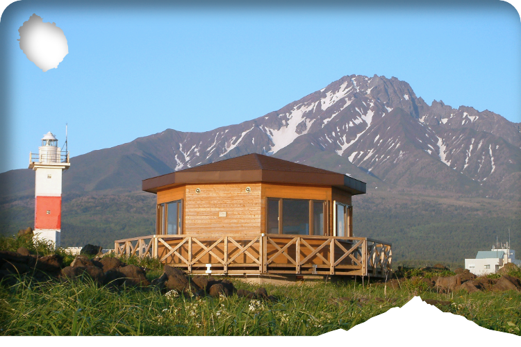 沓形岬公園内にあり、シーズンにはチシマフウロやクロユリなどが花開く、夕陽が美しいポイントです。園内の小高い場所には展望台があり、ここから望む利尻山も素晴らしく、日本海に浮かぶ礼文島も見えます。利尻山、礼文島、日本海の眺望をパノラマで楽しめるよう八角形にデザインされたミニビジターセンター内には、四季折々に変化する利尻の自然や、利尻島を紹介するビデオなどの資料が小規模展示されています。